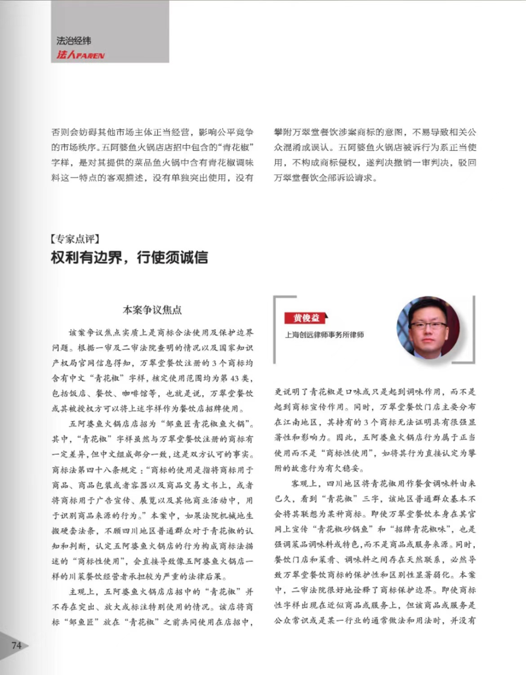 迪庆辉知简讯 | 辉知队黄俊益律师应“法治日报”旗下杂志邀请,就“青花椒”案发表专家点评