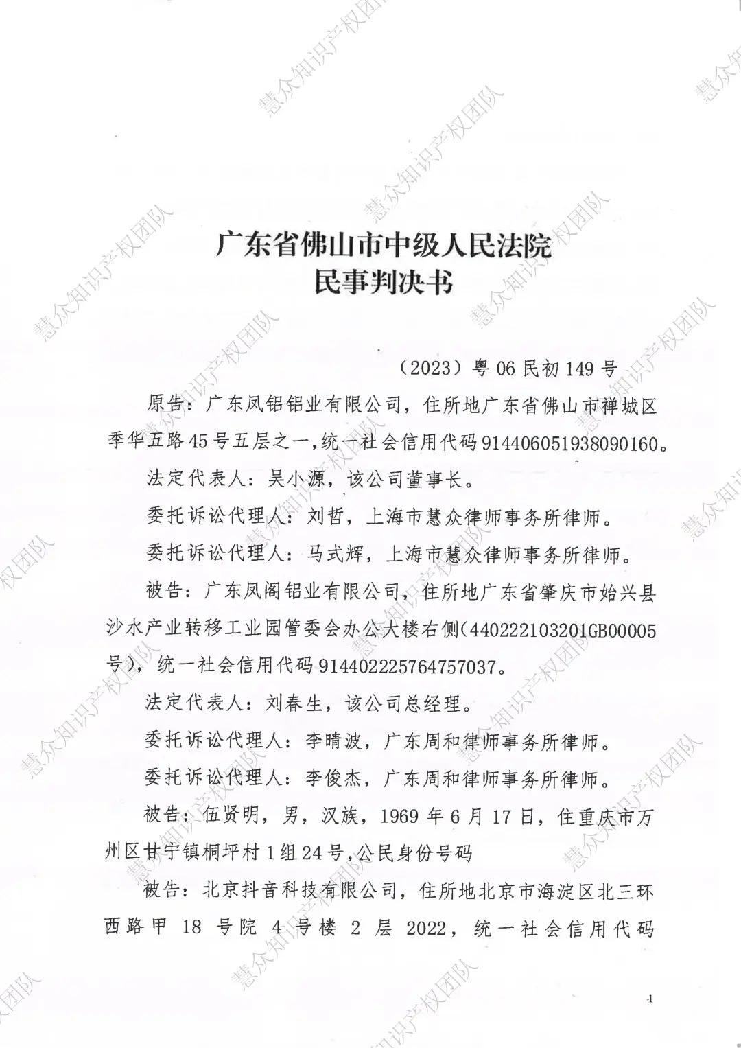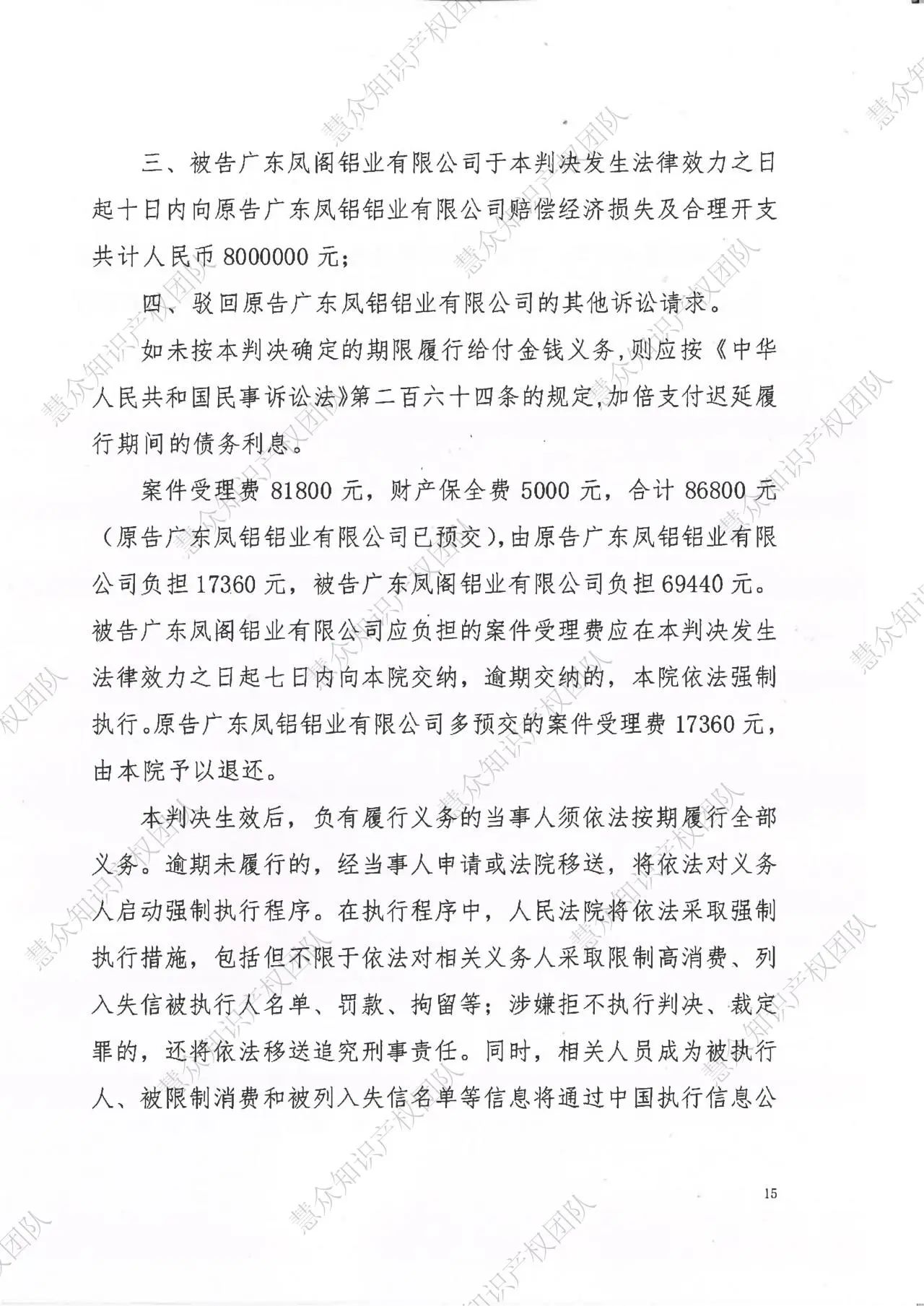 迪庆判赔800万!辉知队代理“凤铝”商标维权案胜诉